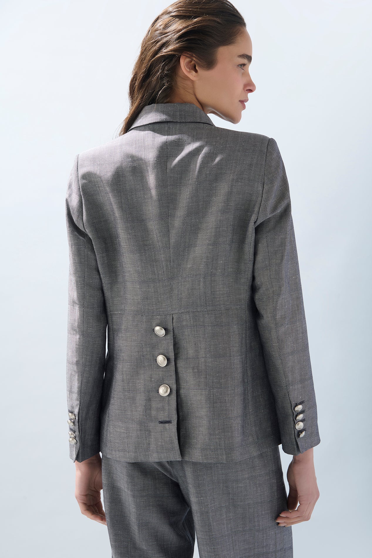 New York , aporta elegancia y carácter; de corte clásico y entallado, tiene una abertura en la espalda con botones Jo & Fire que le da un detalle totalmente inesperado. Un Blazer que no pasa desapercibido.
