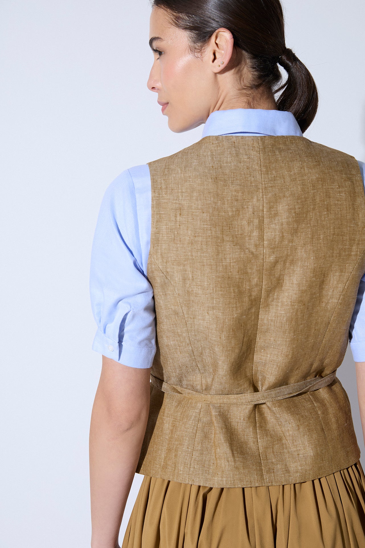 Octavia es nuestro nuevo modelo de gilet para esta temporada de Verano; con un escote en “V” amplio y limpio, que estiliza la parte superior del cuerpo , de corte entallado en los hombros y recto en el torso crea una silueta elegante y alargada.