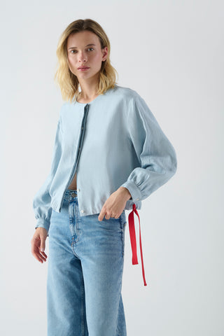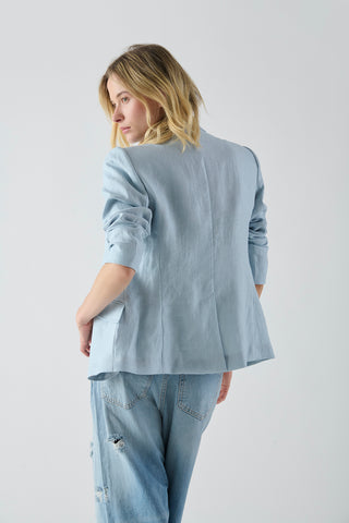 Camisa Sakai Lino Azul con Vivo Plata